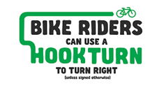 Riders may use a hook turn to turn right at any intersection where a right turn is allowed. This is often a safer option for riders, especially at busy or higher speed intersections.